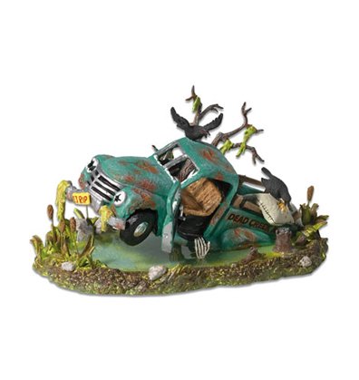 The "Dead Creek Mill Delivery" is in a rut! This broken down truck seems to be stuck in a bog, while the skeleton driver reaches up from the green water. Designed to coordinate with the "Dead Creek Mill", this ceramic accessory is designed and manufactured exclusively by Department 56.