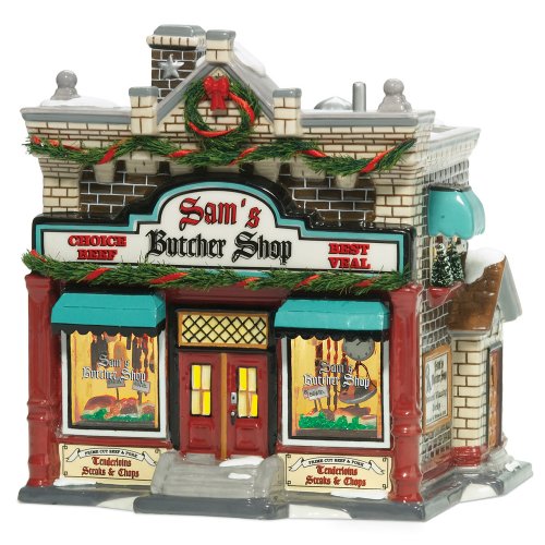 Department 56 Snow Village Sam's Butcher Shop Feature